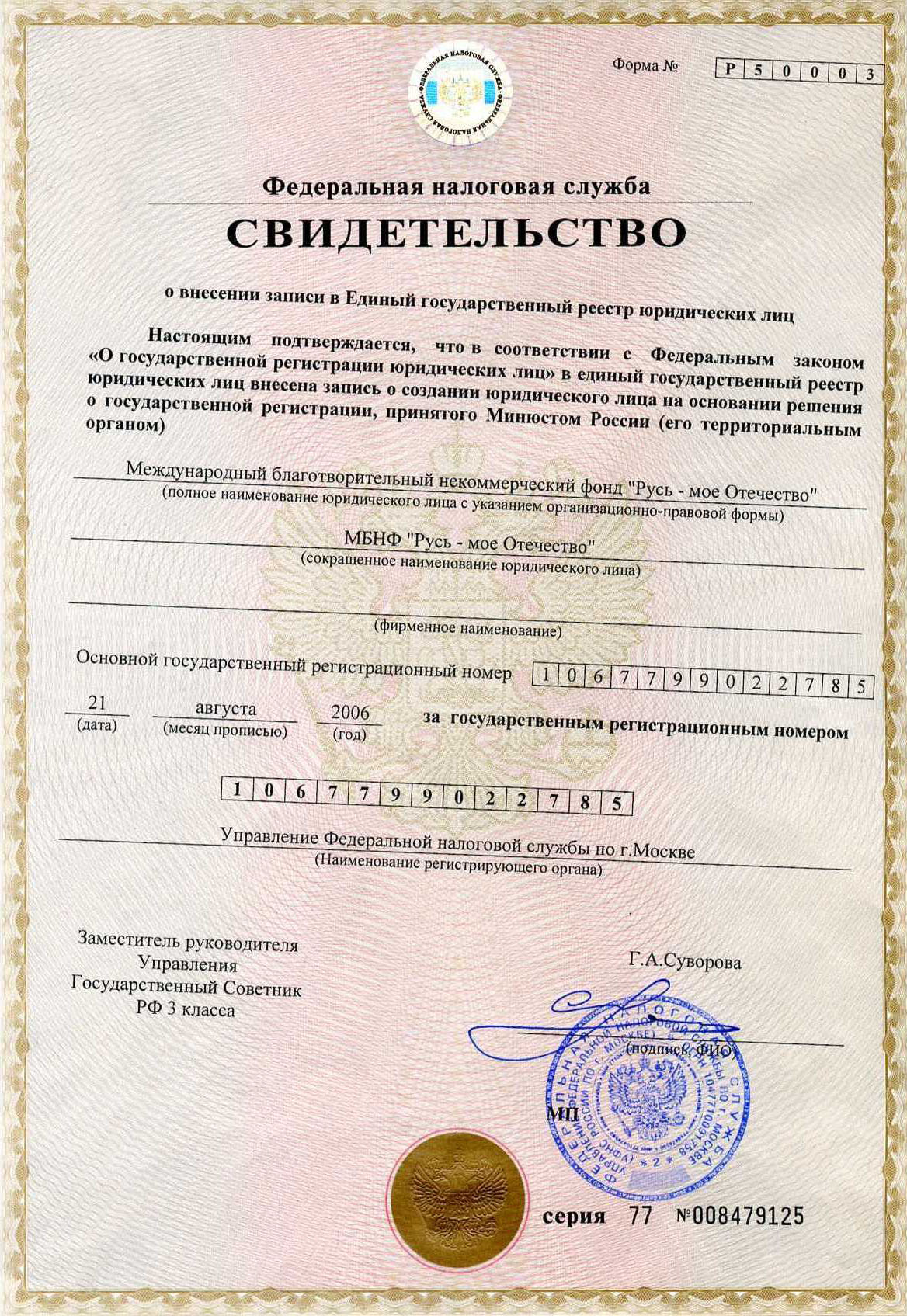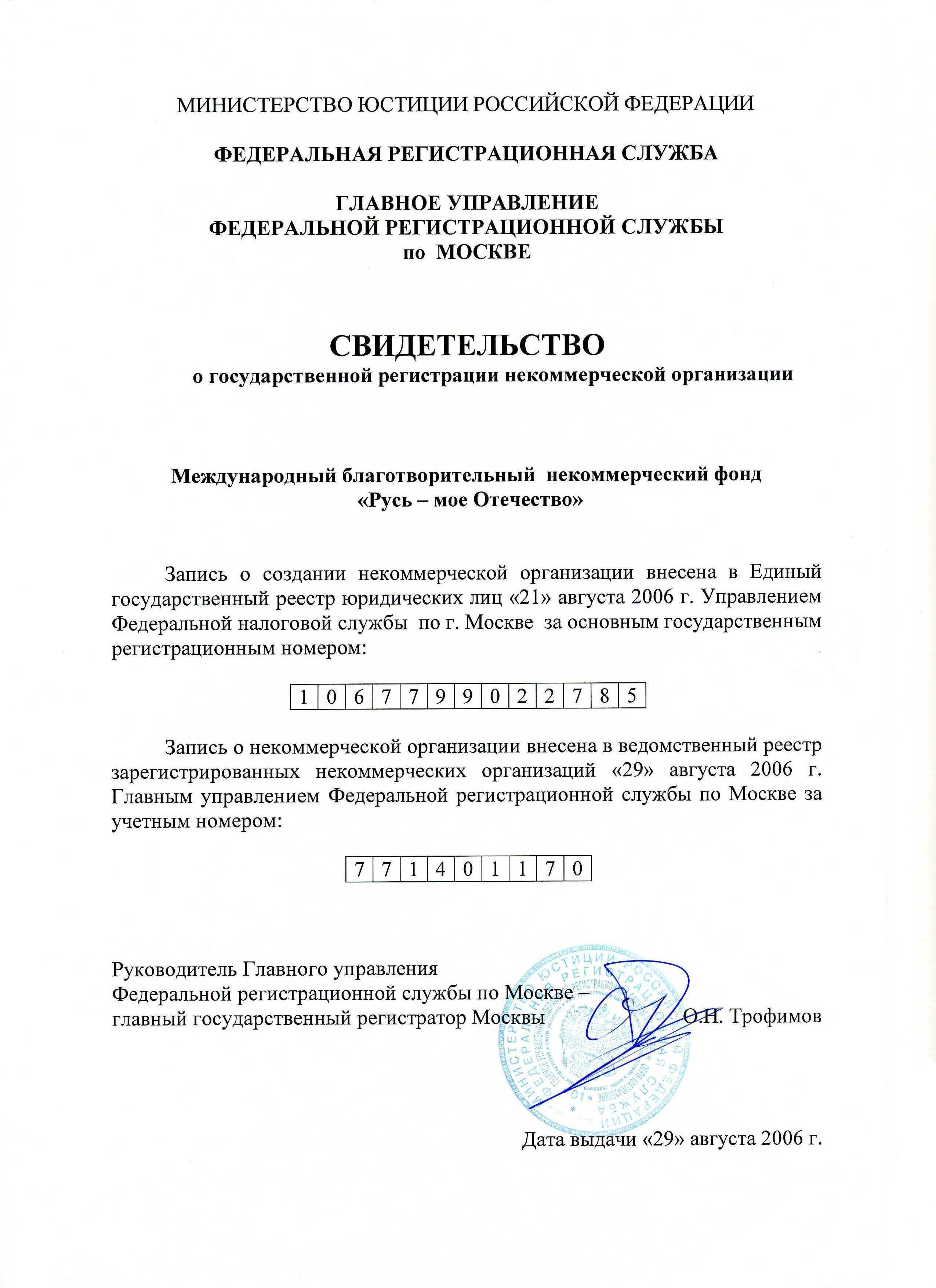 Международный благотворительный некоммерческий фонд "Русь - моё Отечество" создан в 2006г. по инициативе Московской общественности.